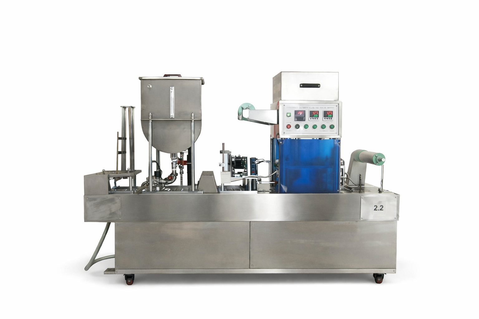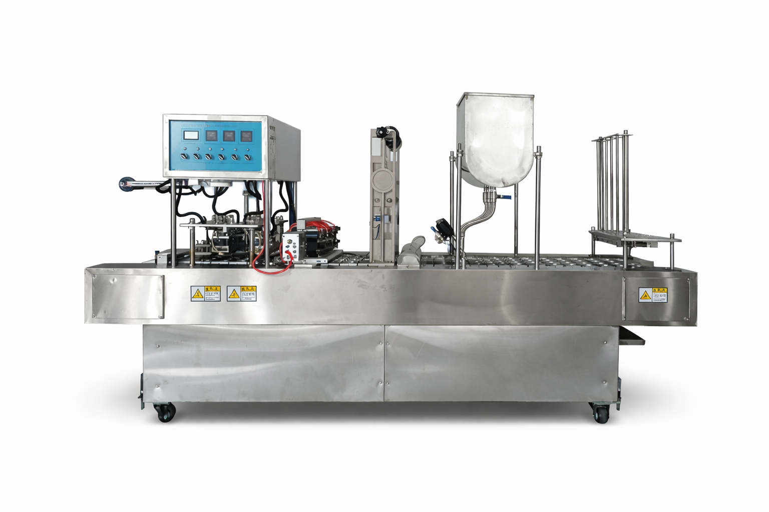 Dirancang untuk pengisian cup yang cepat, higienis, dan efisien. Empat jalur pengisian memastikan produksi lebih tinggi dengan hasil yang presisi dan konsisten.