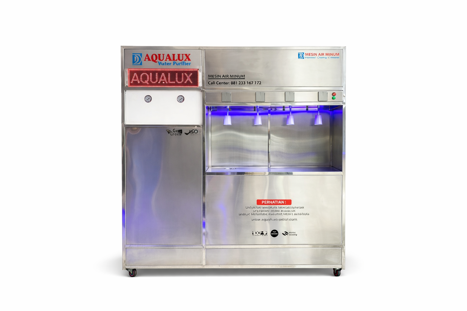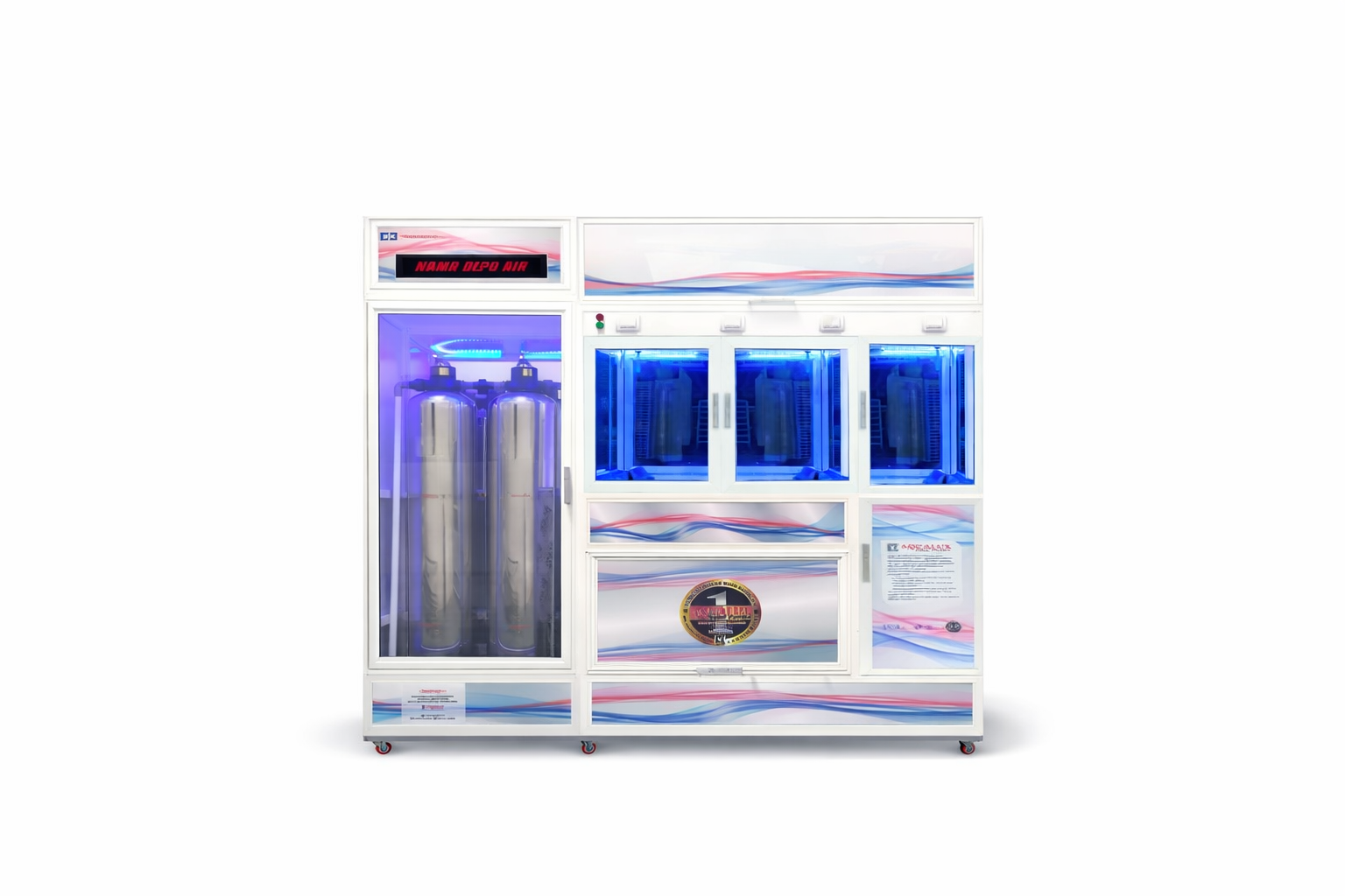 Mesin depot air minum berbahan almini yang ringan, praktis, dan efisien. Dirancang untuk menunjang operasional depot air minum dengan sistem yang higienis dan mudah digunakan